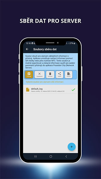 - Aplikace umožňuje sběr a export dat z jednotlivých zařízení. Získaná data lze využít pro analýzu a správu celého systému Poseidon City.