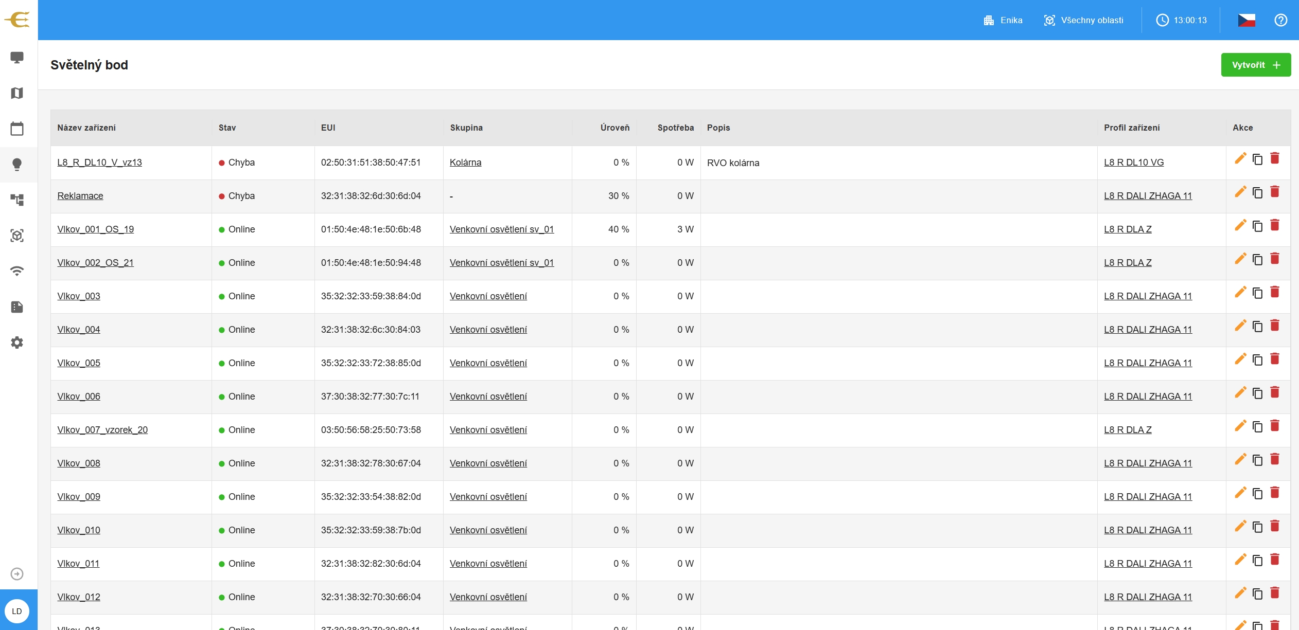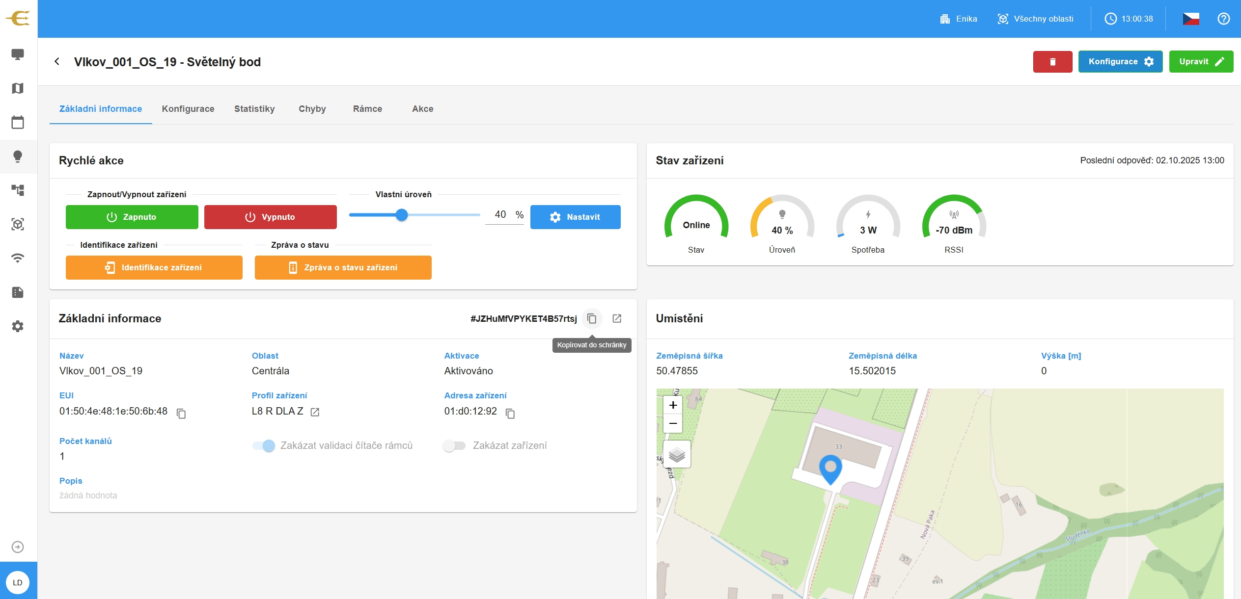 Ano, systém umožňuje monitoring v reálném čase, včetně spotřeby energie jednotlivých svítidel a hlášení jejich stavu. Stav svítidel je viditelný v jejich seznamu, popřípadě v detailním pohledu na jednotlivé svítidlo.